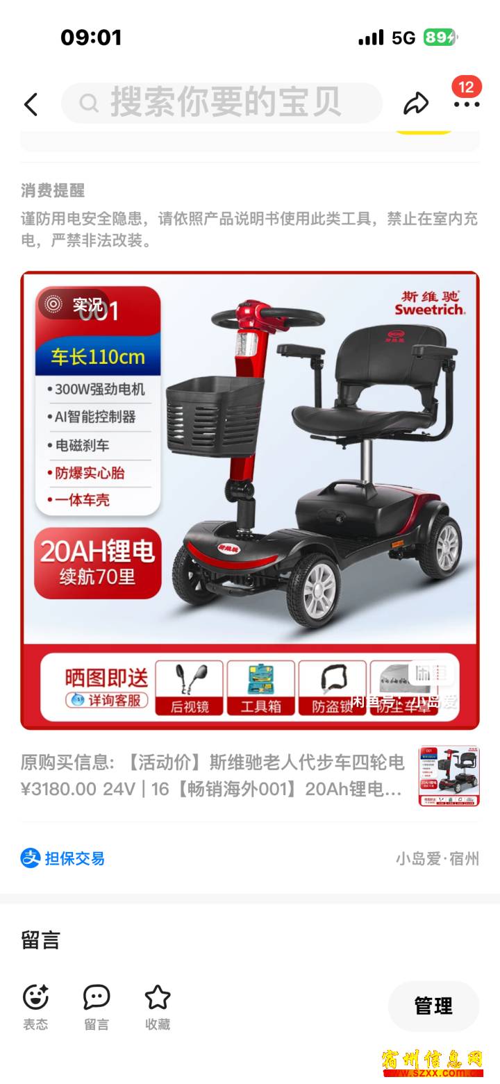 老年代步车,准新车,没上过路,轮胎唰新,喜欢的来。给老头买的车,不愿意骑,便宜卖。来电话时请说是在宿州生活网www.suzhouba.cn看到的!