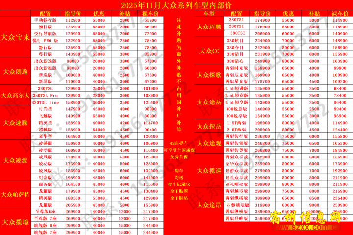 大众系列内部报价单来电话时请说是在宿州生活网www.suzhouba.cn看到的!