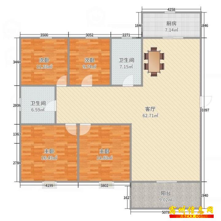 - 降价急售万达华城三室两厅100.18平65万