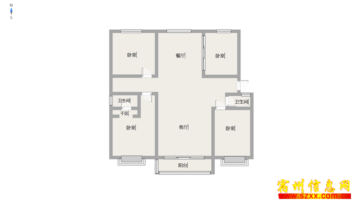 兴福园135平三室两卫毛坯房报59万,中间好楼层,双阳台洋房户型,南北通透,有证可贷款,诚心出售来电话时请说是在宿州生活网www.suzhouba.cn看到的!