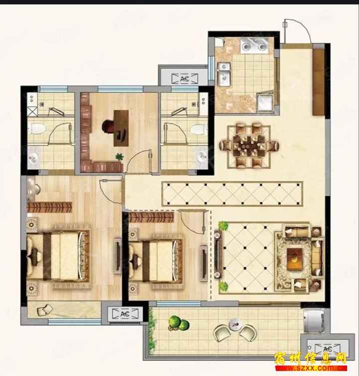 - 华府春天107平三室精装报39万