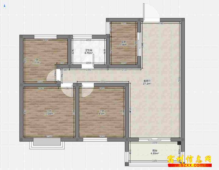 - 33万小三室十来楼拂晓新城92平精装满二