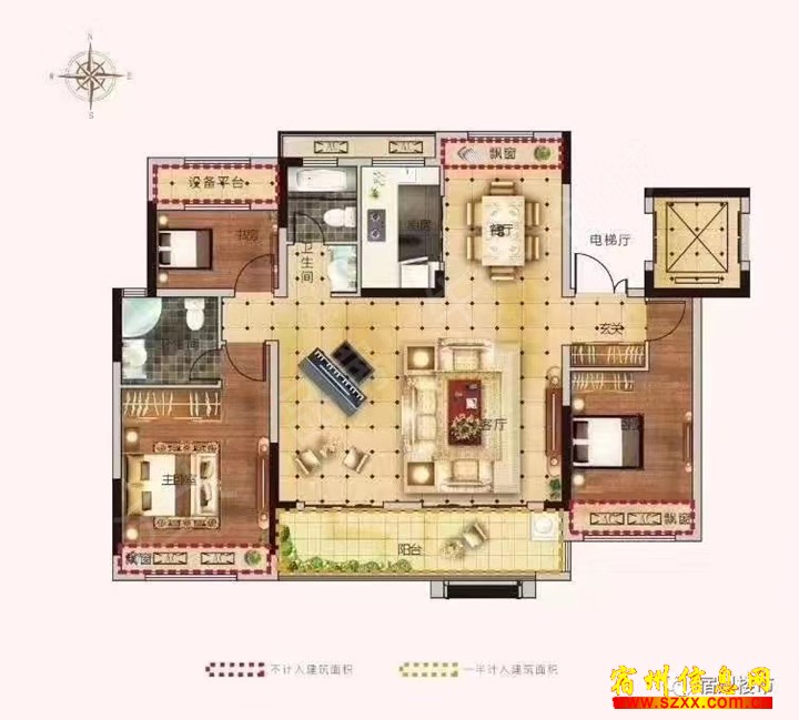 - 政务区多层2楼120平方南北通透户型