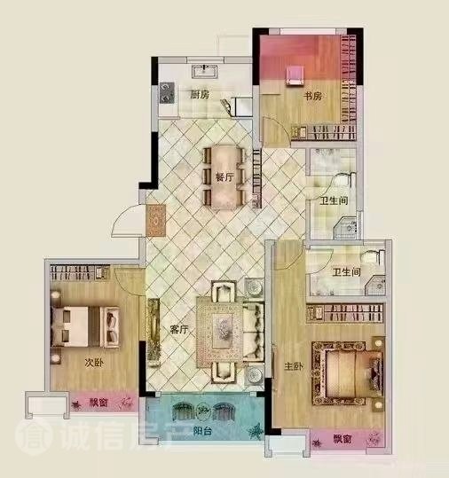 - 政务区多层2楼120平方南北通透户型