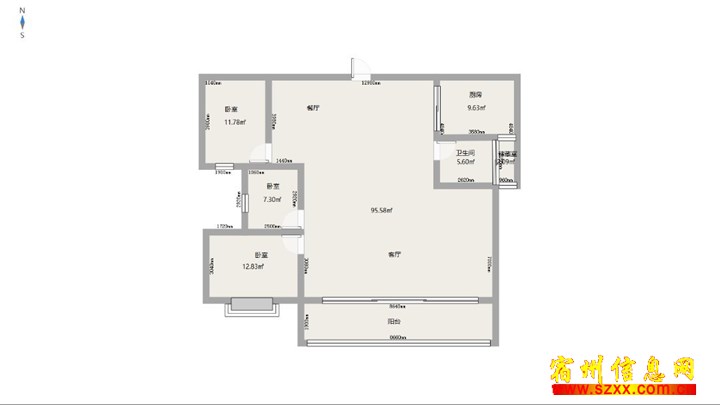 - 首钢首御110平方三室两厅 三开间朝南户型