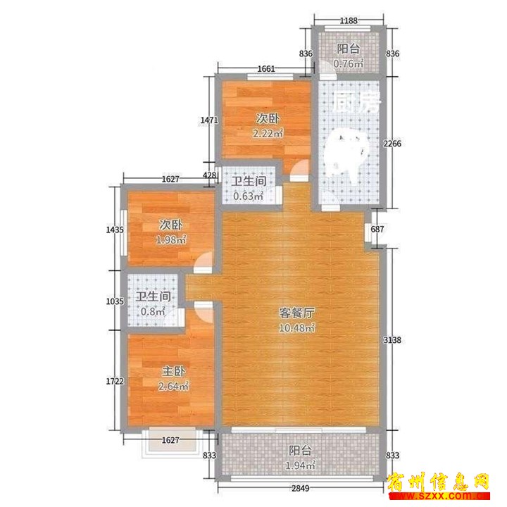 - 当北苑小区3室2厅1卫1阳台的出现,是又