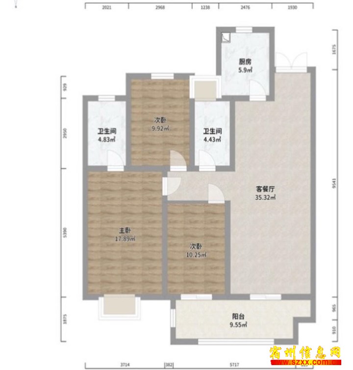 商品房住宅,三室两厅双卫,满二无大税,单价6000多,纯人车分流(小区上面电瓶车都不允许停的)。看房方便来电话时请说是在宿州生活网www.suzhouba.cn看到的!