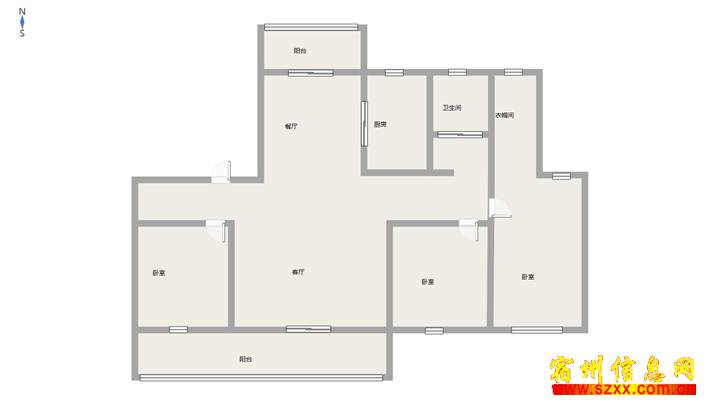 - 政务区多层2楼120平方南北通透户型