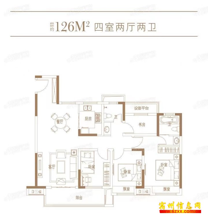 北高新区,西边户,单价4200/平方, 4室2厅2卫 3室超南 客厅朝南来电话时请说是在宿州生活网www.suzhouba.cn看到的!
