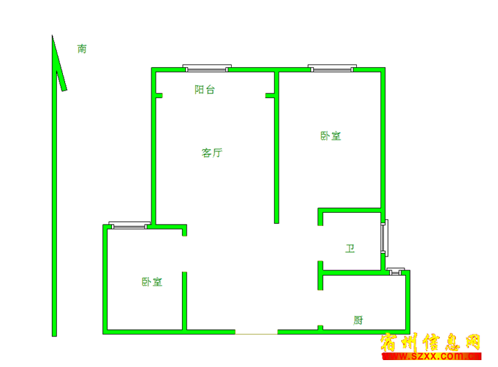 - 宿州院子,洋房三室精装,55万,南北通透户型!