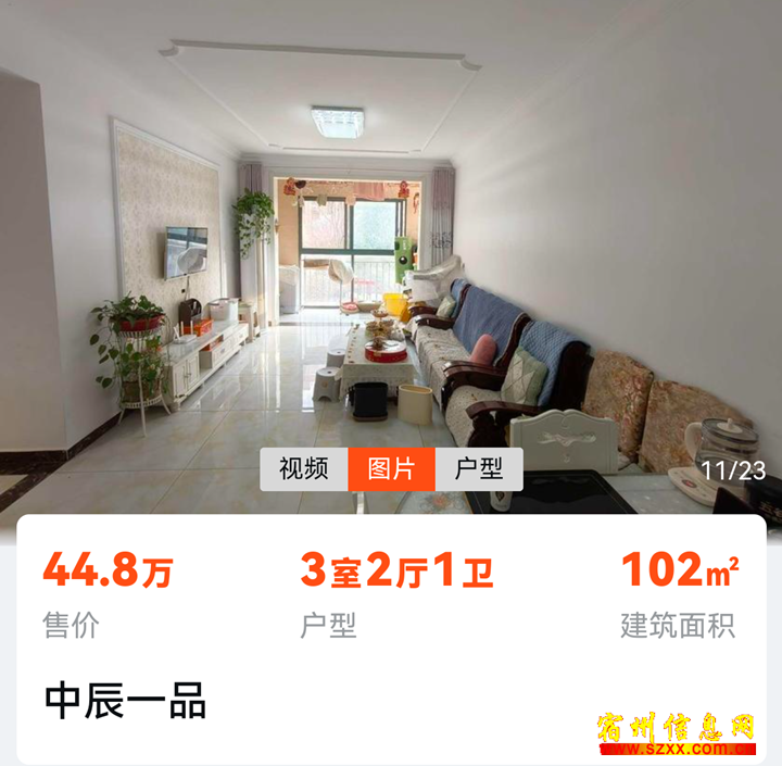 中辰一品102平精装三室,房主急售!来电话时请说是在宿州生活网www.suzhouba.cn看到的!