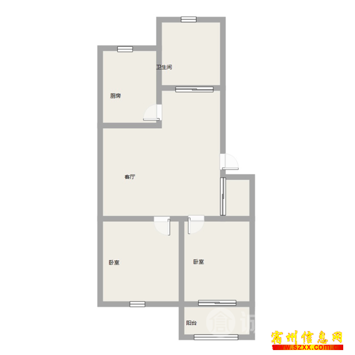 - 市中心三室一厅80平米急售19.8万