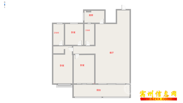- 南北通透95.2㎡,3室1厅1卫1阳台全