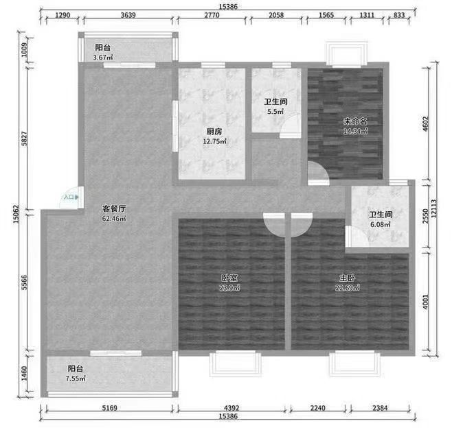 - 元一新天地15楼95平三室毛坯急售39.6万