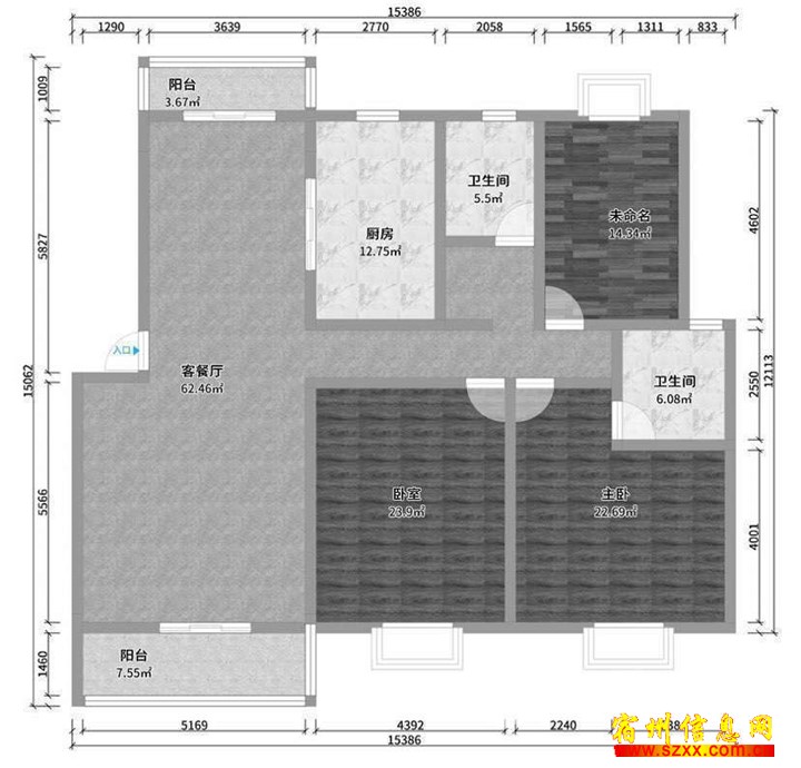 - 宿州院子 洋房 8/9层 107平方3房2卫 6