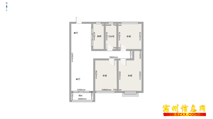 - 北苑小区3室2厅1卫1阳台