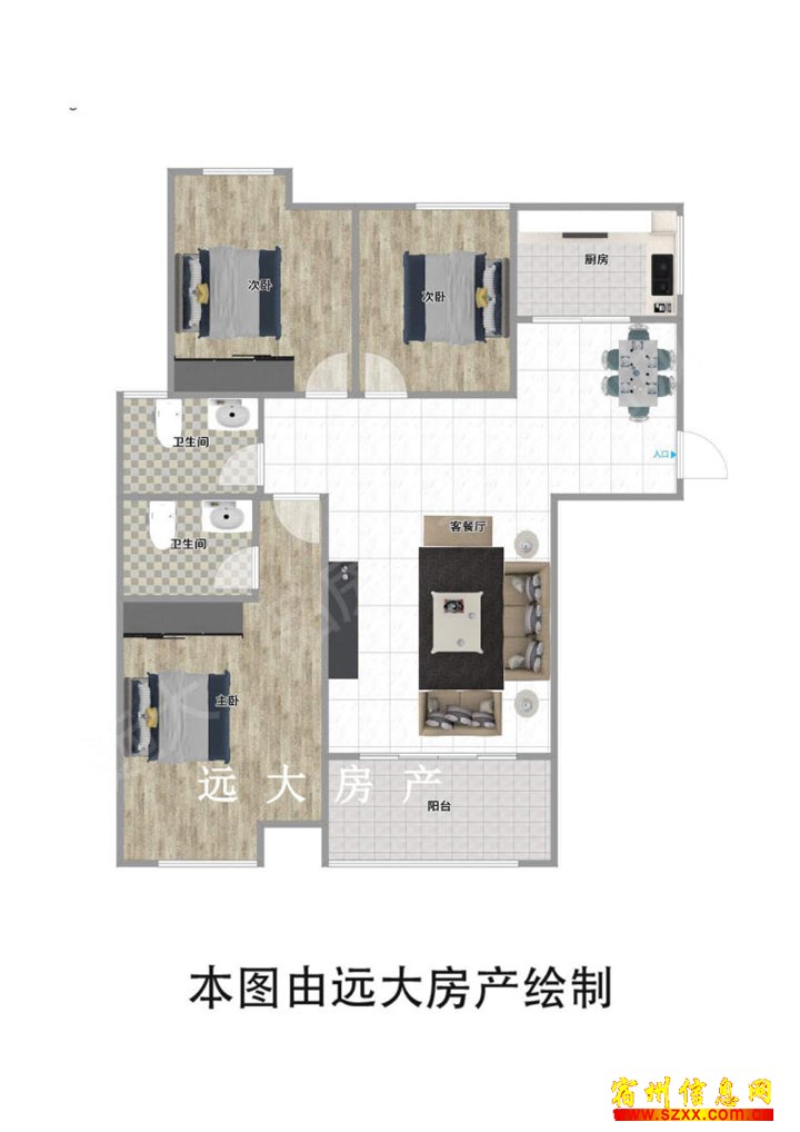- 埇贤悦府 120平 58万 三室两厅
