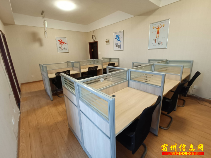 中装修,109平米,办公用,有16个卡位,1200元每月!两台空调!来电话时请说是在宿州生活网www.suzhouba.cn看到的!