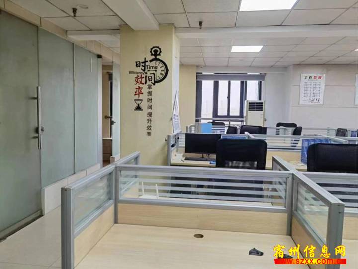 此房精装,面积100-1800平,可整租可分租,独立密码进户门,有部分办公家具,房间布局合理,接待大厅,办公室,会议室,财务室等。免去企业因装修的烦恼,人到即可办公,单价不高,整租给予免租期。来电话时请说是在宿州生活网www.suzhouba.cn看到的!