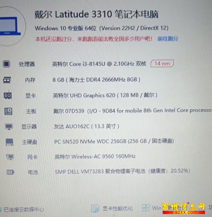 戴尔L3310笔记本,i3八代-8145u,8g内存,256G固态硬盘,14吋!