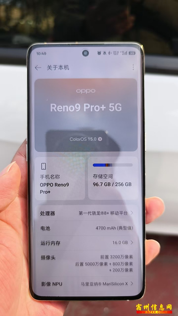 出一部OPPO Reno9 Pro+ 金色 16+256G内存,95新,很少用,没有磕碰划痕,没换过或修过,使用一切正常,有需要的可以联系我,仅限安徽宿州市区及周边联系,其他地方勿扰,见谅。来电话时请说是在宿州生活网www.suzhouba.cn看到的!