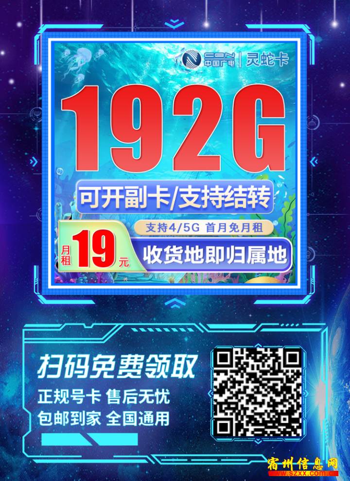 广电灵蛇卡19元192G通用流量(流量支持结转)+可选号