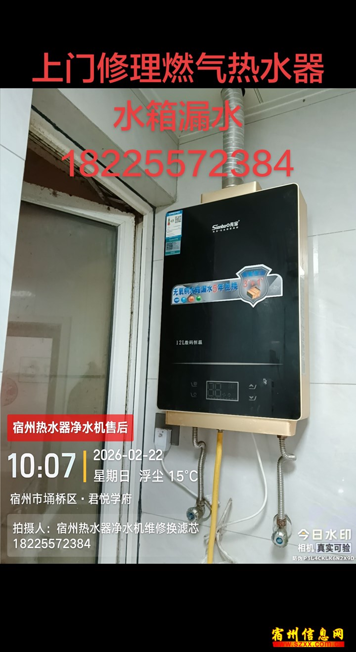 上门修理燃气热水器净水器及更换滤芯来电话时请说是在宿州生活网www.suzhouba.cn看到的!