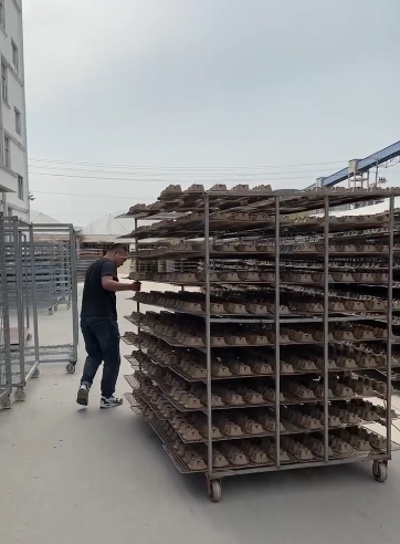 推车子晾晒纸壳。不搬不卸,轻松不累,不用动脑。