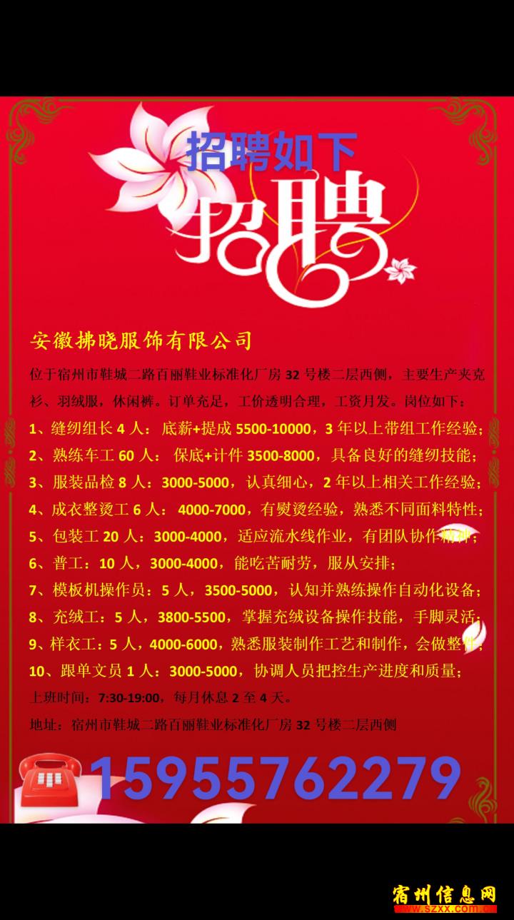 - 服装厂招聘啦