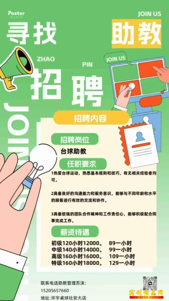 任职要求:1.热爱台球运动,熟悉基本规则与技巧,有无相关经验者均可