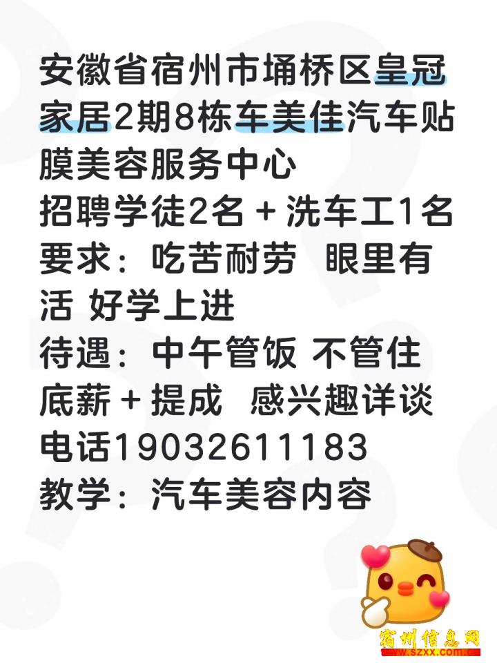 - 汽车美容店招聘学徒2名
