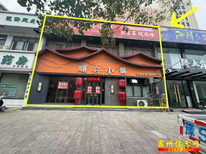宏泰世纪城东门北500平顺兴小镇,上下两层,租金一年15万 , 整体转让接手就干,楼上大概10个包厢 , 装修精美 ,接手就干,有兴趣的朋友可以实地考察或者电话联系!来电话时请说是在宿州生活网www.suzhouba.cn看到的!