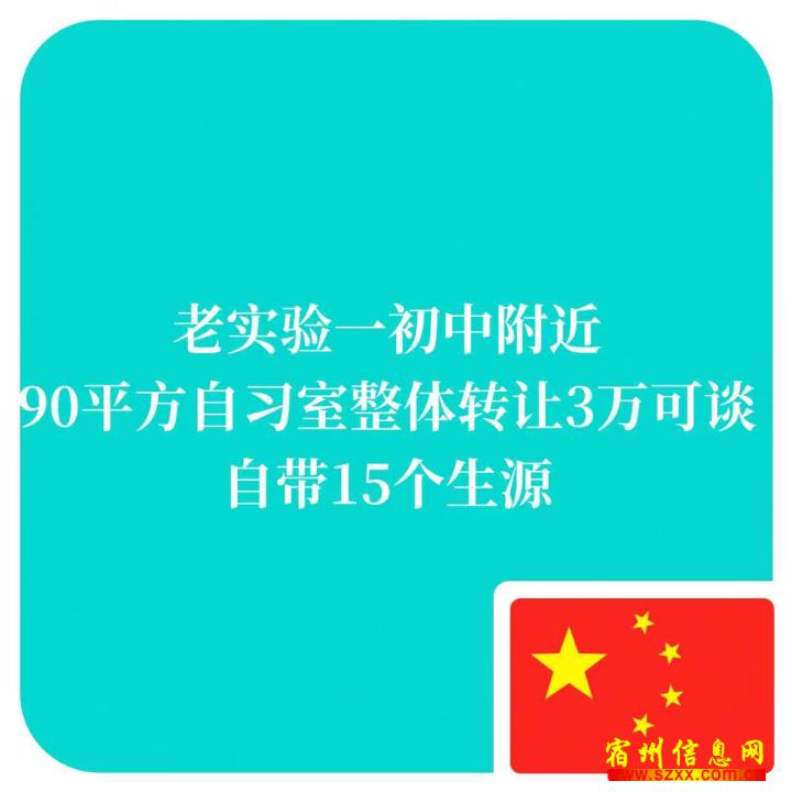 老实验一初中附近70平方自习室,整体转让接手就干,租金一年1.5一年,自带生源15个左右 ,设备齐。接手就干,也方便招生,有兴趣的朋友可以实地考察或者电话联系!来电话时请说是在宿州生活网www.suzhouba.cn看到的!