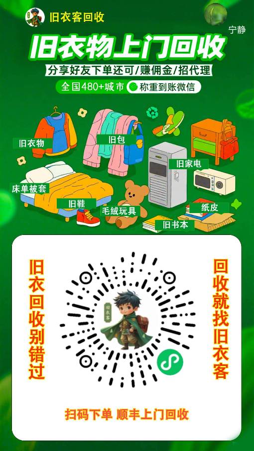 旧衣客回收,专注家庭旧物回收,现招全国代理合伙人,0投资!当天结算隔天结算已经全国开始!助力全国代理一起享受上门回收时代红利!旺季已经到来!抓紧抢占市场抢占长期属于自己的《旧衣客线上回收站》!