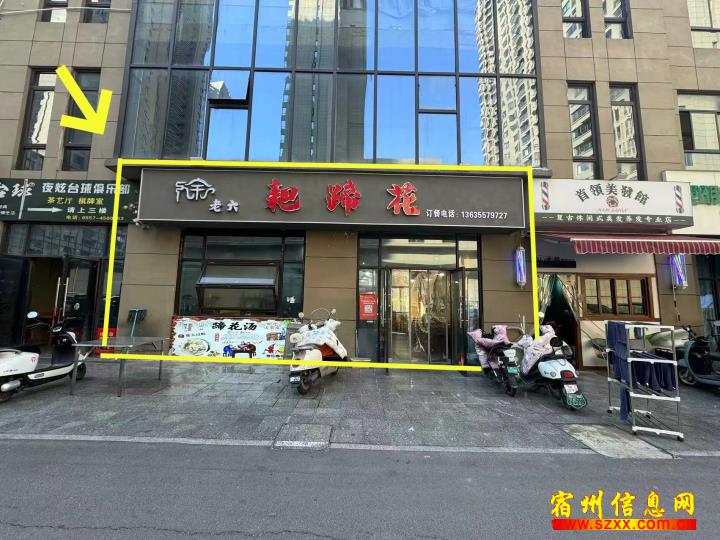 金方世纪城东门70平徐老六耙蹄花,纯一楼,租金4万一年,整体转让,设备齐全接手就干,周边各行业都有,早形成固定的商业氛围,有应聘的朋友可以实地考察或者电话联系!来电话时请说是在宿州生活网www.suzhouba.cn看到的!