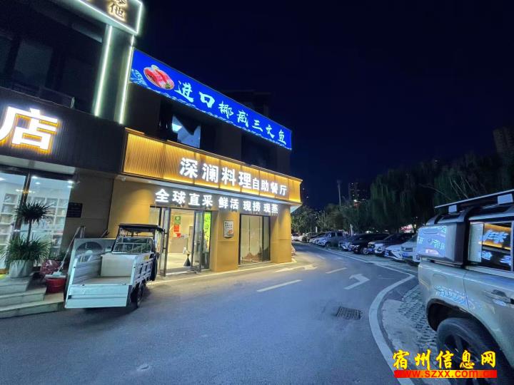 瑞禧台420平深澜料理自助餐厅,上下两层,一年房租16万,空转无限制,店铺全新装修,双门头拐角铺非常显眼,内有5个包间,门前地方宽阔,方便停车,有兴趣的朋友可以实地考察或者电话联系!来电话时请说是在宿州生活网www.suzhouba.cn看到的!