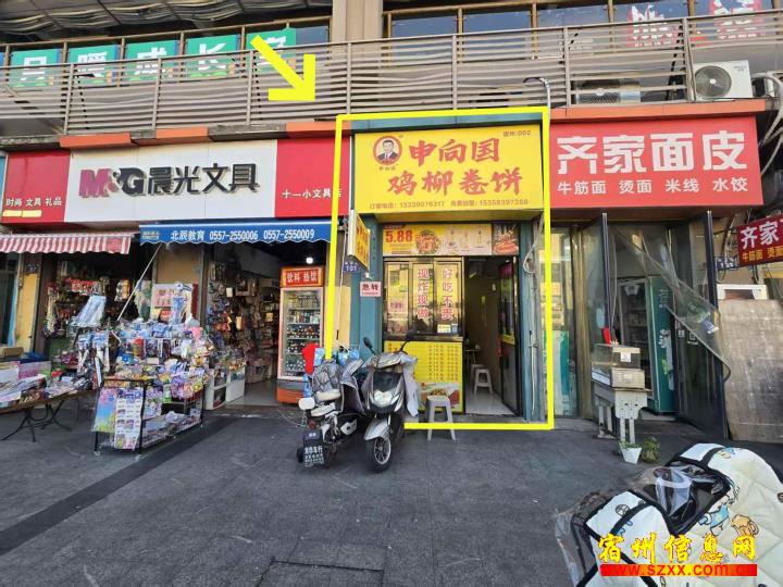 国购十一小对面30平小吃店,租金2.8万一年,可半年一交,目前经营卷饼店,有10平方阁楼增加使用面积,可整转可空转,有兴趣的朋友可以实地考察或者电话联系!来电话时请说是在宿州生活网www.suzhouba.cn看到的!