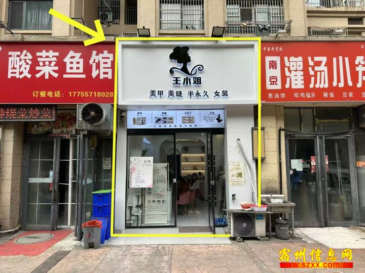 公园道一号南门40平王小姐美甲美睫,租金5.2万一年,内部装修精美,空转无行业限制,附近各行业都有,周边小区林立,有一定的消费力,有兴趣的朋友可以实地考察或者电话联系!来电话时请说是在宿州生活网www.suzhouba.cn看到的!