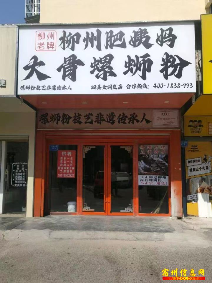 泗县金润发120平螺狮粉,租金9.8万一年,位置优越,周边各行业都有,整转可连同品牌,空转无行业限制,有兴趣的朋友可以实地考察或者电话联系!来电话时请说是在宿州生活网www.suzhouba.cn看到的!