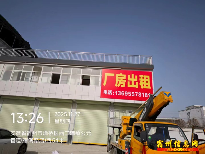 厂房出租,地址在安徽省宿州市埇桥区西三辅镇公元管道(宿涡路店)西54米,有意向可直接电话联系来电话时请说是在宿州生活网www.suzhouba.cn看到的!