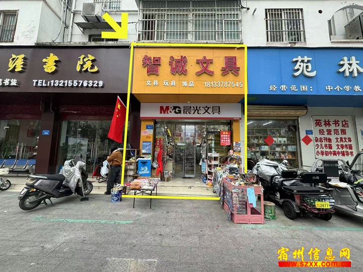 桃园山庄九小对面55平智诚文具,纯一楼门面,带10平方阁楼增加使用面积,租金3.2万一年,整转转让面议,空转带空调无行业限制,有兴趣的朋友可以实地考察或者电话!来电话时请说是在宿州生活网www.suzhouba.cn看到的!